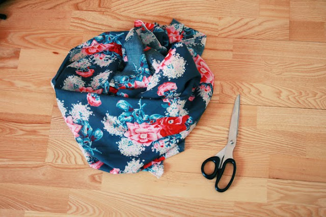 First you need some fabric and sharp scissors.