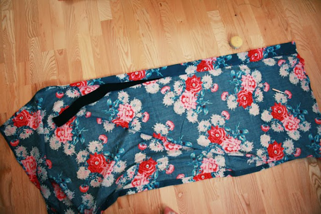 Using a safety pin, insert the waistband. Adjust the lenght of your waistband according to your waist - cut off the extra part and sew the two sides together.